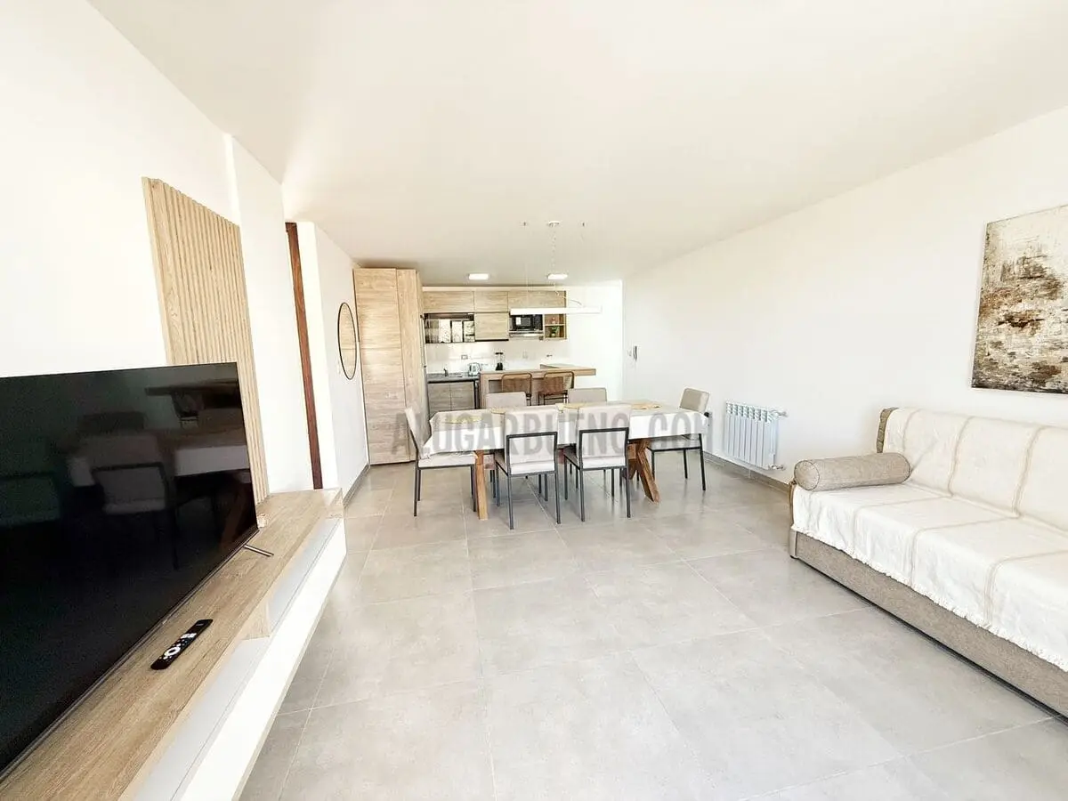Departamento de dos dormitorios, con 2 camas matrimoniales de 1,60 metros por 2 metros y un sofá marinera de 0,70 metros por 1,80 metros parte inferior y superior. Cochera para 1 vehículo. NO INCLUYE ROPA BLANCA.
