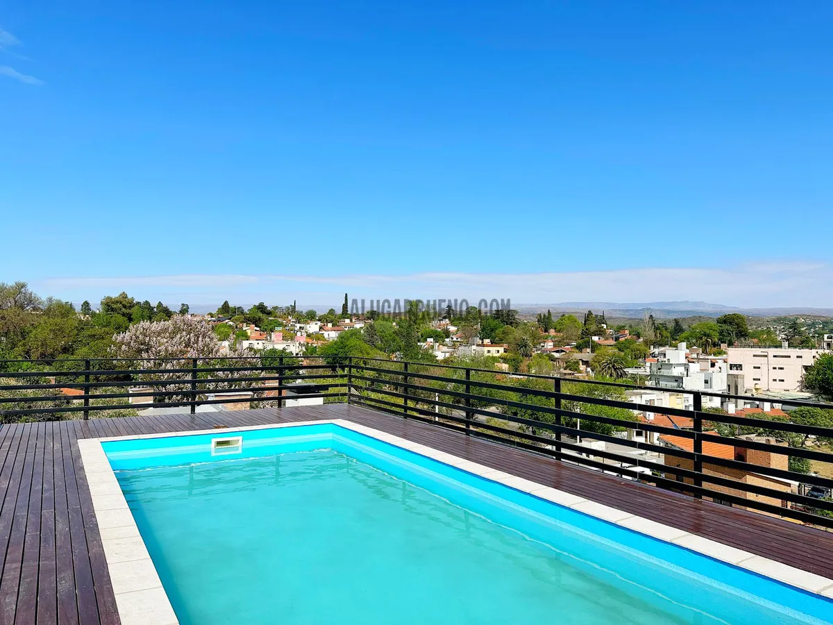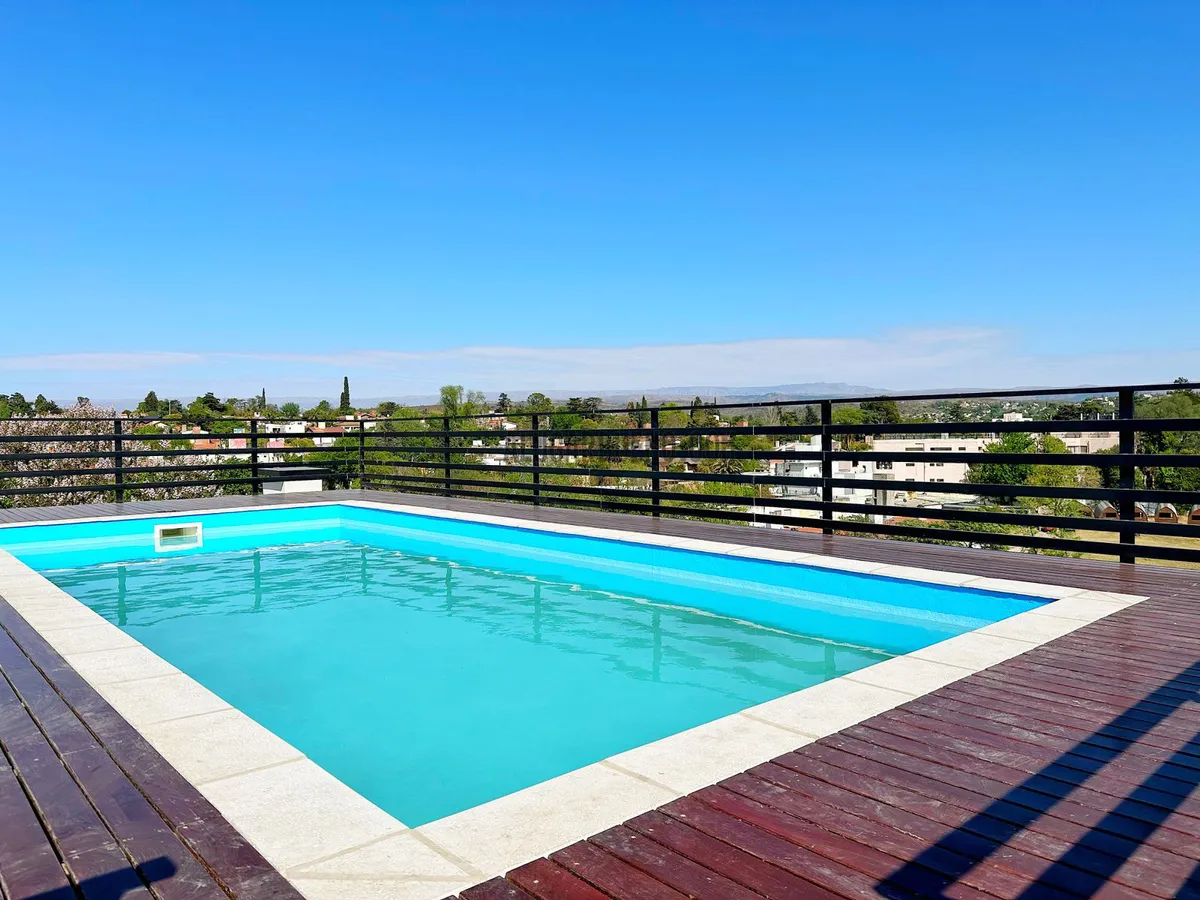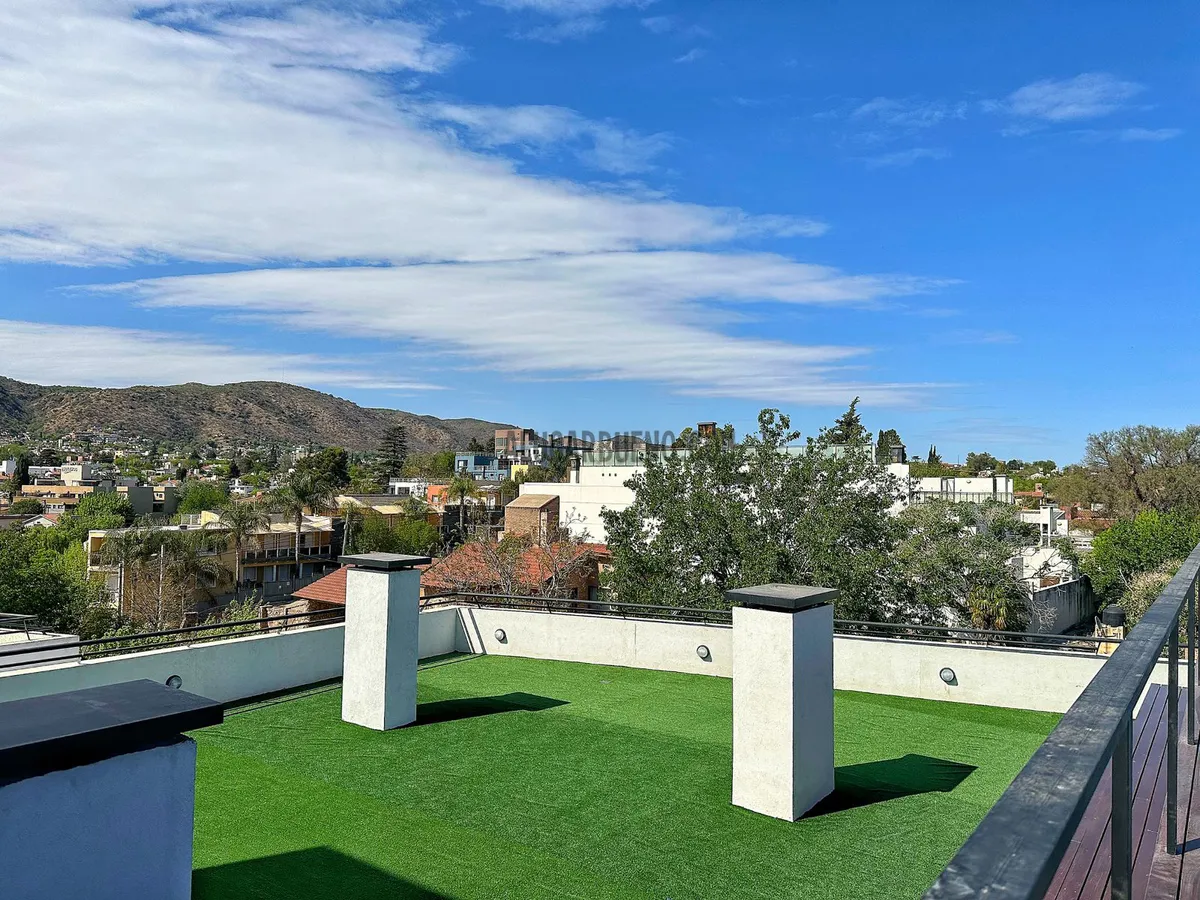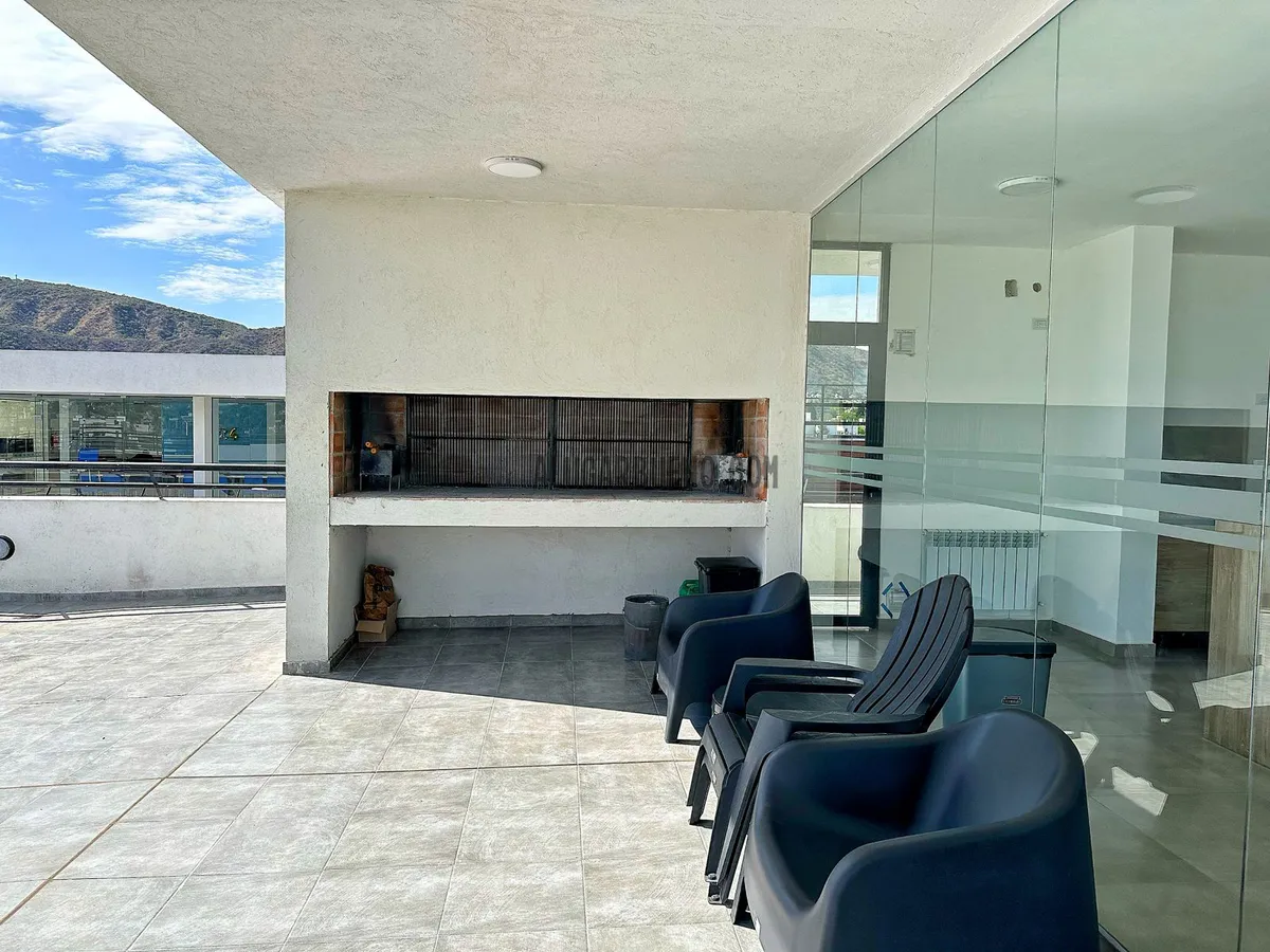 En el último piso se encuentran los amenites, de uso compartido por los inquilinos, donde se podrá disfrutar de un quincho cerrado con mesas y sillas, bacha de lavado, cocina, heladera, baño, wifi, además cuenta con asadores al aire libre con mesas y sillas, piscina al aire libre con vista panorámica a las sierras, con reposeras, y terraza de césped sintético.