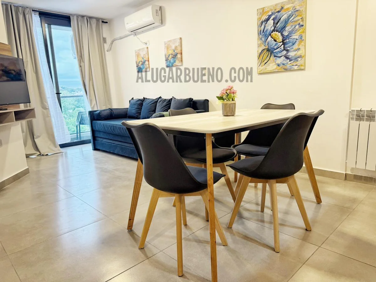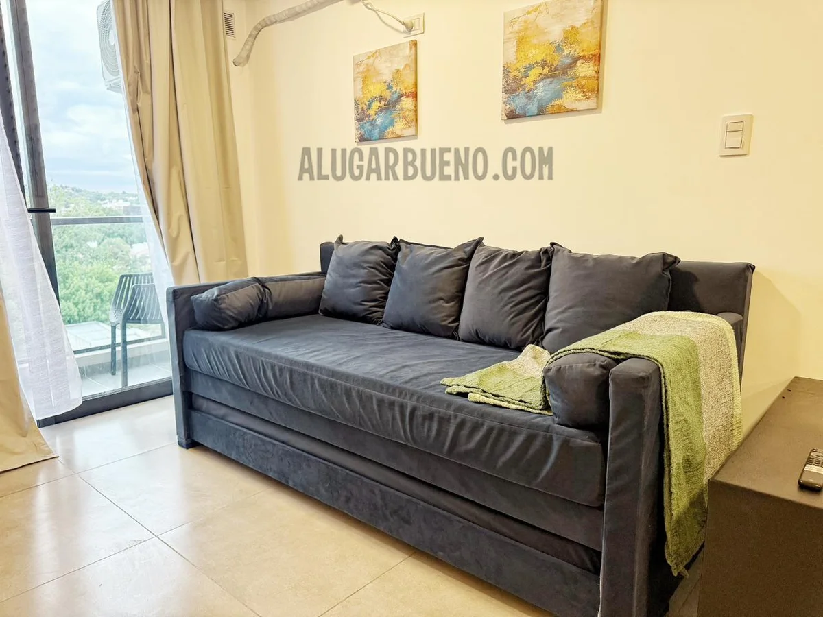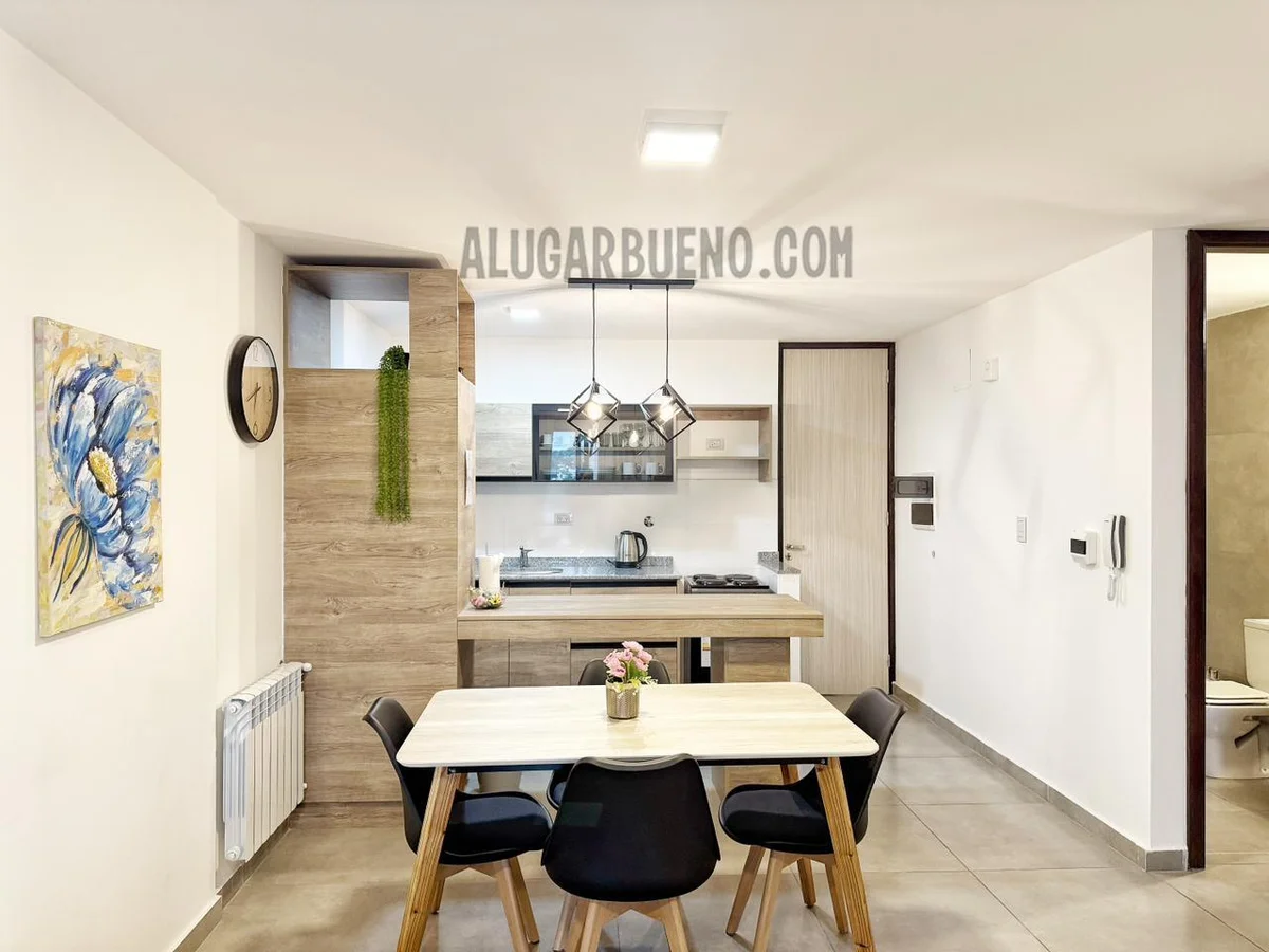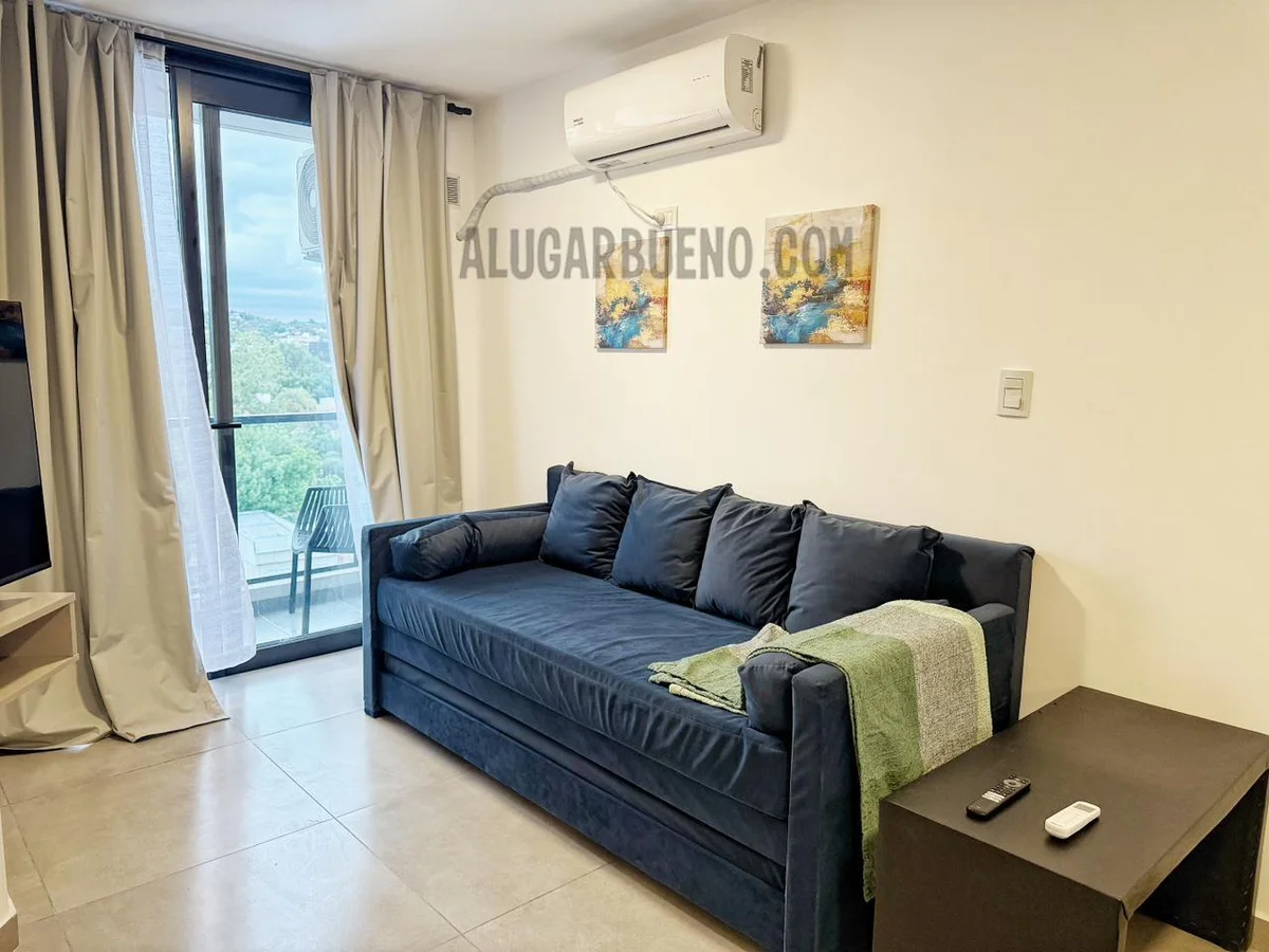 El departamento está ubicado en segundo piso con vistas a la ciudad. Posee living comedor equipado con aire, tv, muebles de cocina modernos con vajilla completa, cubiertos, asaderas, fuentes, pava, heladera, cocina con horno.