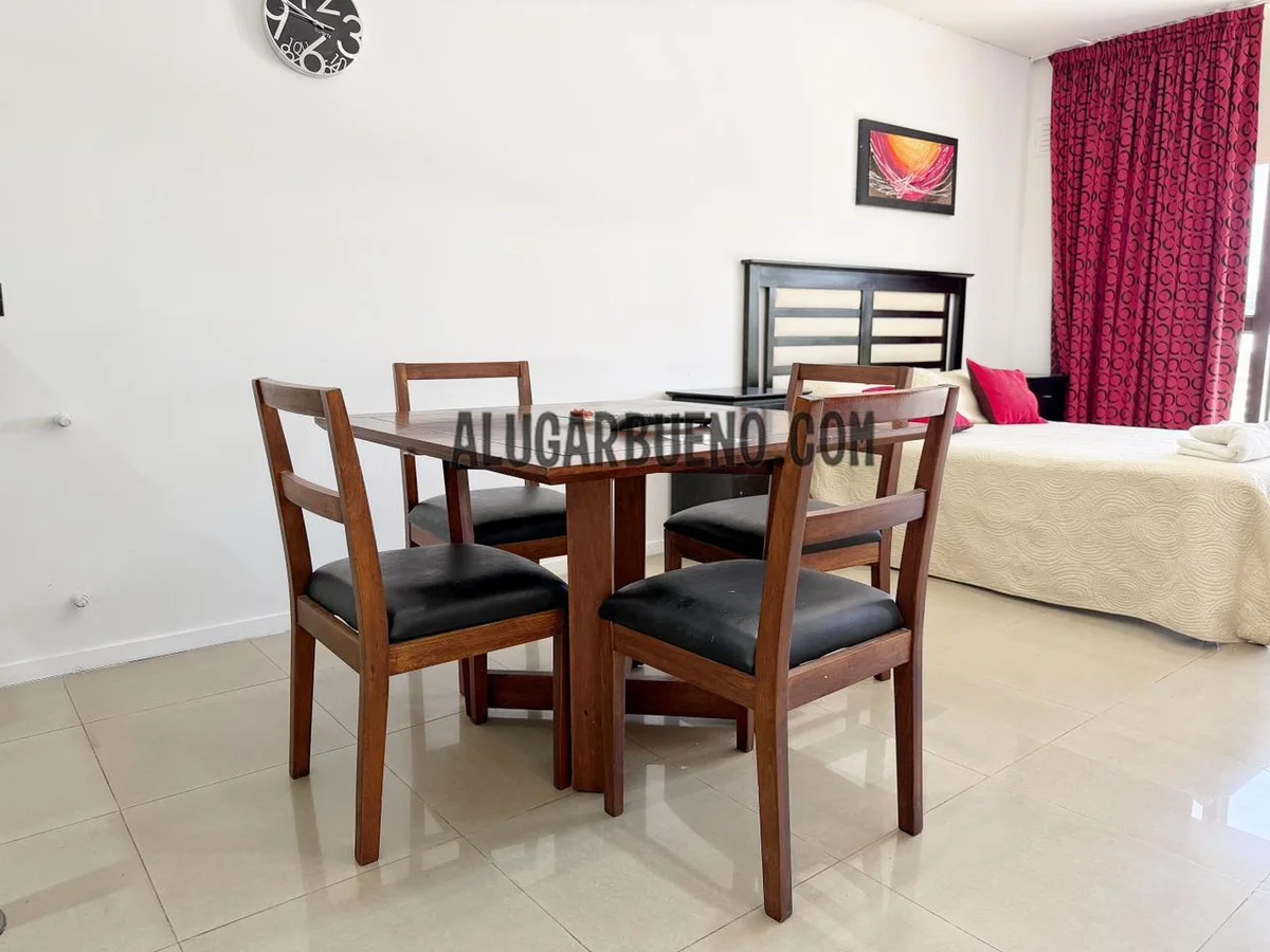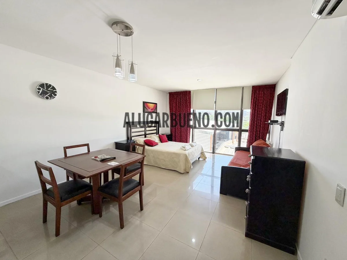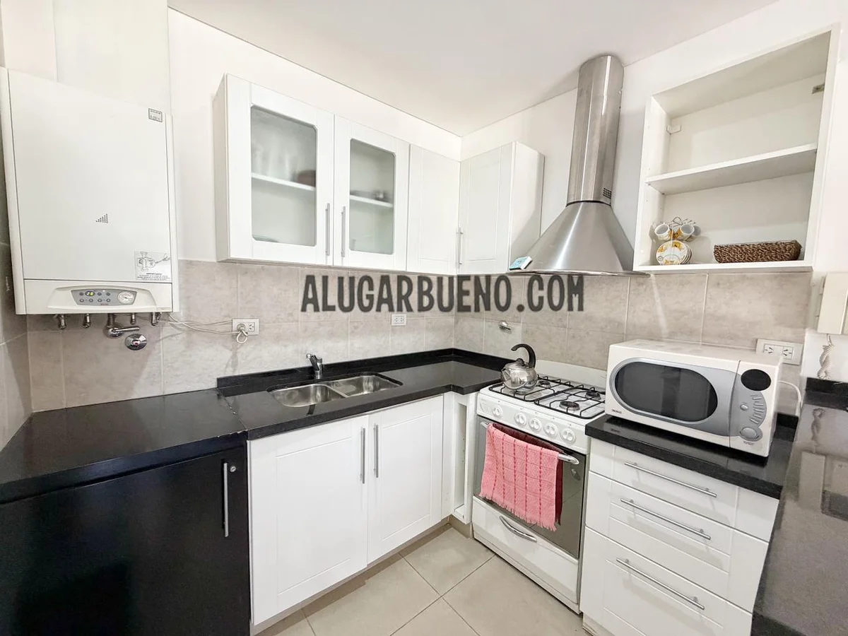 El departamento ubicado en el segundo piso, posee living comedor con aire acondicionado, tv, muebles de cocina equipado con vajilla completa, cubiertos, asaderas, fuentes, pava, heladera, cocina con horno.
